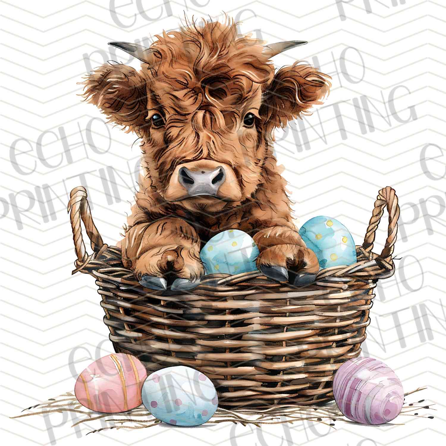 ESTRG 296 – HIGHLAND COW IN BASKET