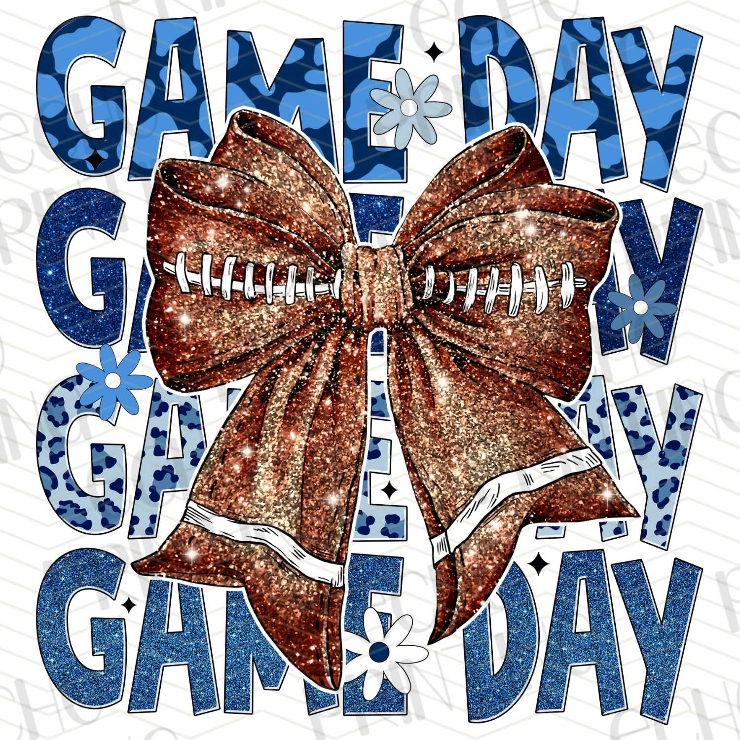 FTB 131 – GAME DAY STACKED BLUE WITH SPARKLE FOOTBALL BOW