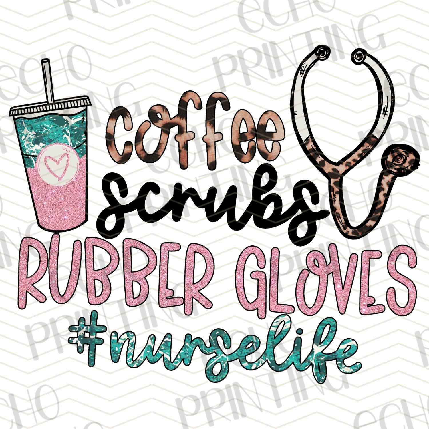 NRS 159 - COFFEE SCRUB RUBBER GLOVES NURSE LIFE
