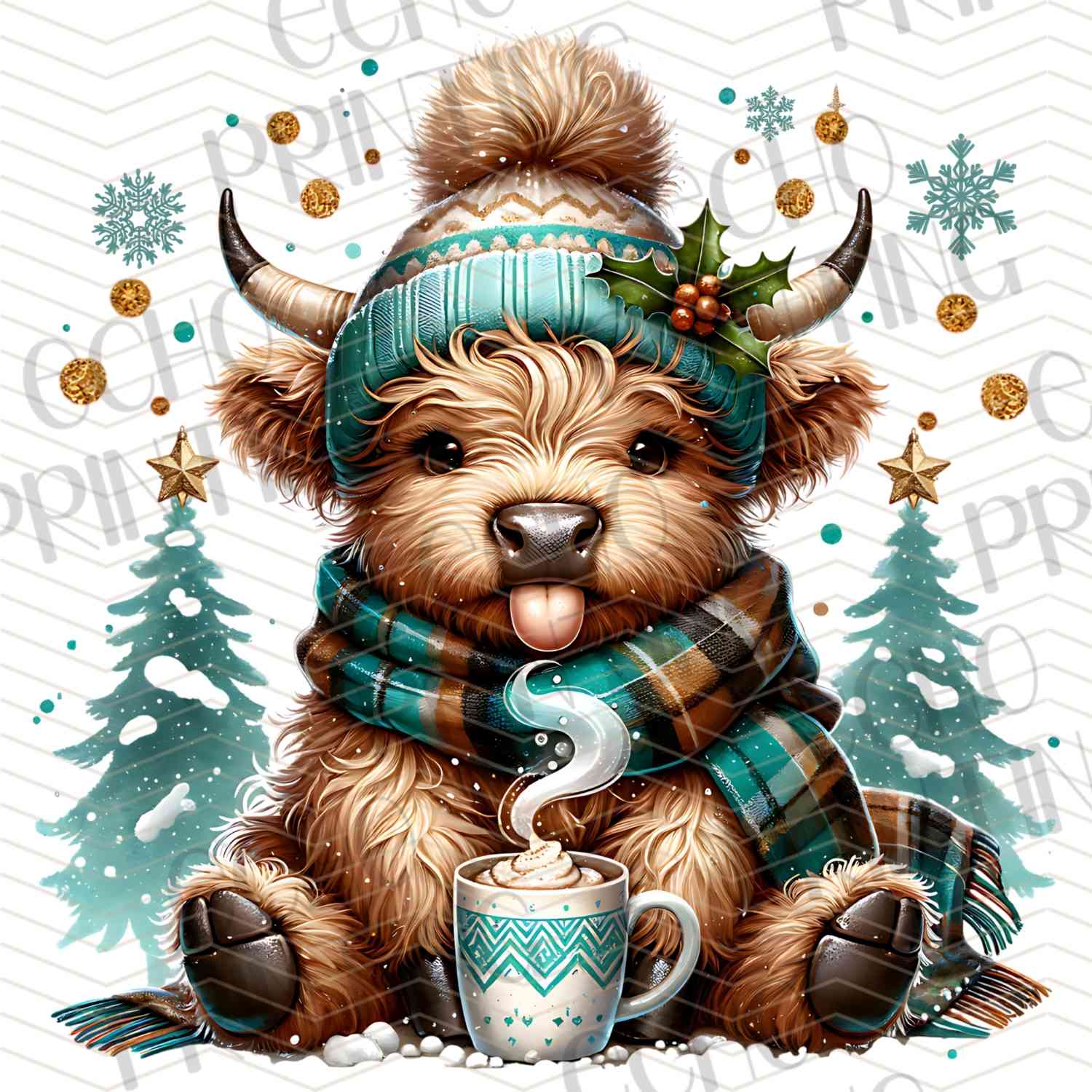 WNXM 586 – HIGHLAND COW BLUE SCARF CHRISTMAS