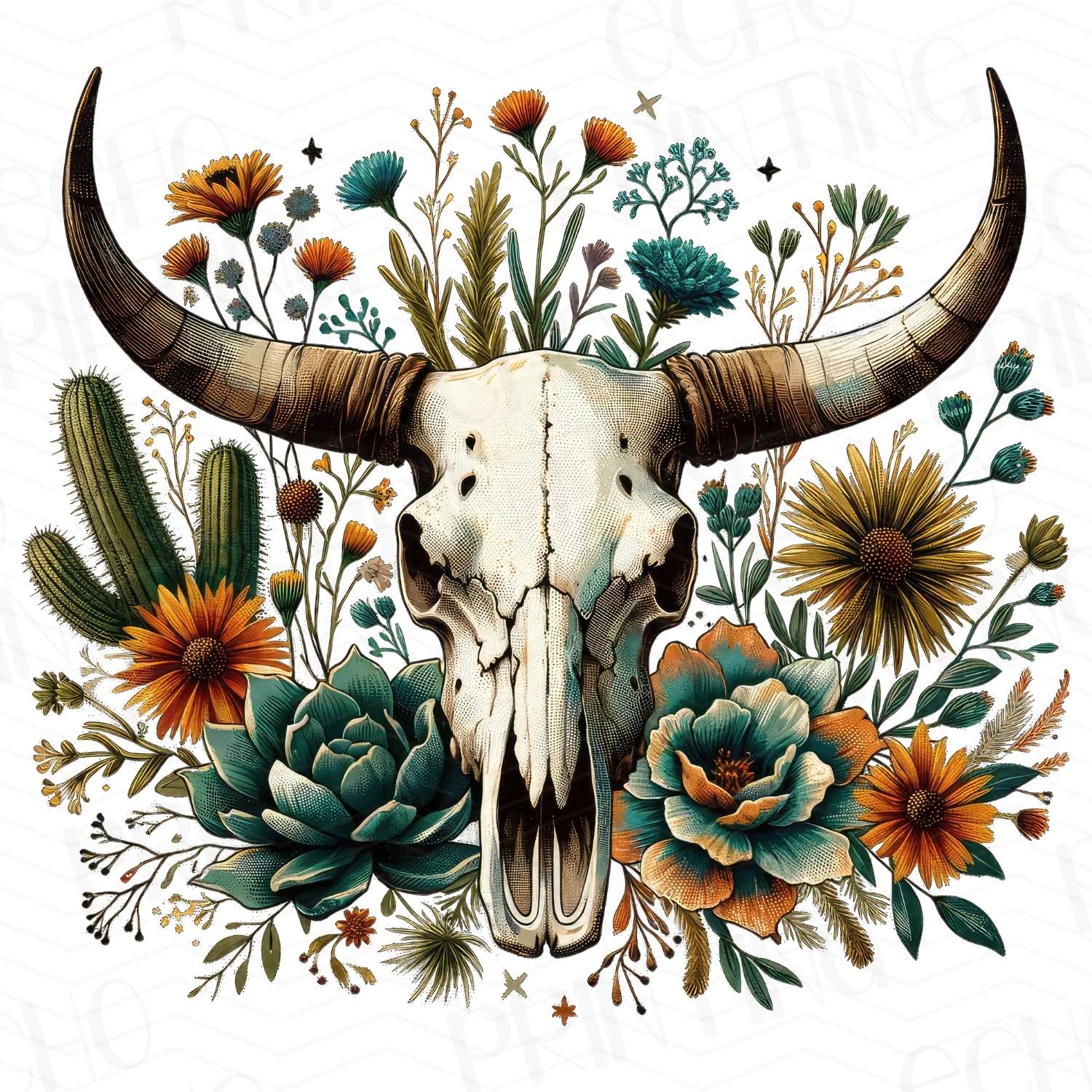 WSTNG 27 - COW SKULL WITH FLORAL CACTUS